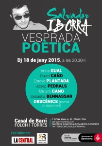 El proper dijous, a les 20.30 hores, al Casal de Barri Folch i Torres, es farà la IV vesprada Salvador Iborra en homenatge al poeta assassinat el 29 de setembre del 2011 a Barcelona. Us oferim el poema inèdit Postal i us convidem a sumar-vos a l’homenatge amb la vostra assistència…