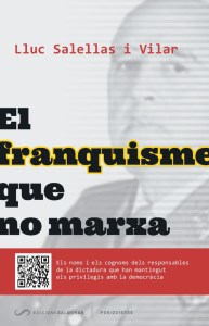 El quart llibre de la col·lecció és El franquisme que no marxa, de Lluc Salellas i Vilar, que en els darrers temps s’ha convertit en un dels llibres revelació de la temporada. Quins són els mèrits perquè aquest periodista (Girona, 1984) hagi aconseguit una bona resposta del públic i de la crítica? Doncs molt senzill: honestedat, rigor i ganes de tocar el voraviu. En definitiva, periodisme d’investigació ben fet (passa que n’hi ha tan poc, que quan en trobem és com quan vas a un restaurant i el pa es bo). El llibre se cenyeix a la centena llarga de pàgines marca de la casa i parteix d’un punt de vista molt interessant: una comparativa entre les transicions a Portugal i Grècia -la dictadura més llarga d’Europa d’una banda i la democràcia segrestada pel cop d’Estat dels Coronels de l’altra- que demostra que aquí no hi va haver cap mena de ruptura sinó que el franquisme ha continuat infiltrat en totes les estructures de poder de l’Estat.