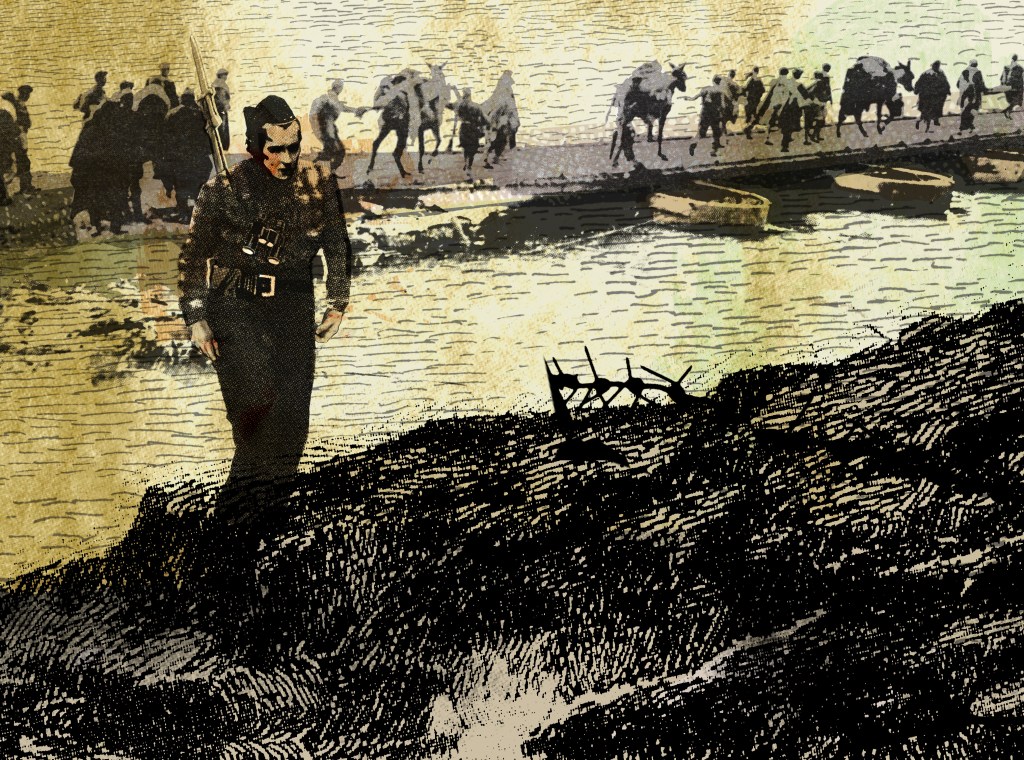 Pere Ginard il·lustra ‘El vell al pont’ (Libros del Zorro Rojo), el conte de l’escriptor Ernest Hemingway (Illinois, 1899 – Idaho, 1961) sobre la cruenta batalla, amb un epíleg de l’hispanista Ian Gibson. Ho fa amb una sèrie de 12 il·lustracions, realitzades amb al tècnica del collage a partir de fotografies d’època.