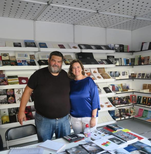 Gori Dolz, editor de Alrevés -que aquest estiu han estat multipremiats la festival de Gijón- passa per la parada com el dia abans ho féu en Roger Clanchet i després l’Ilya Pérdigo i l’escriptor Vicenç LLorca tambè arriba a saludar ara que tot just acaba de publicar la seva nova novel·la. Abraçades fortes amb Xulio Ricardo Trigo i amb la Coia Valls, dues de les persones més extraordinàries d’aquest món literari nostrat, a banda de boníssims escriptors.