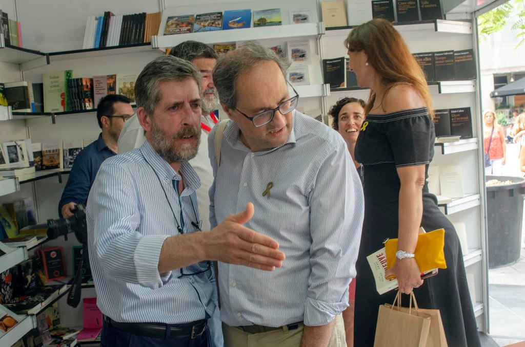 Els diumenges són dies ideals per passejar i per passar-los entre llibres. I els polítics, és clar, els aprofiten. Dia de visites institucionals iniciada per Pere Aragonès, vicepresident del Govern i de la diputada Jenn Díaz, bona escriptora també ella mateixa. Però la més esperada va ser la del president Quim Torra juntament amb la consellera de cultura Laura Borràs.