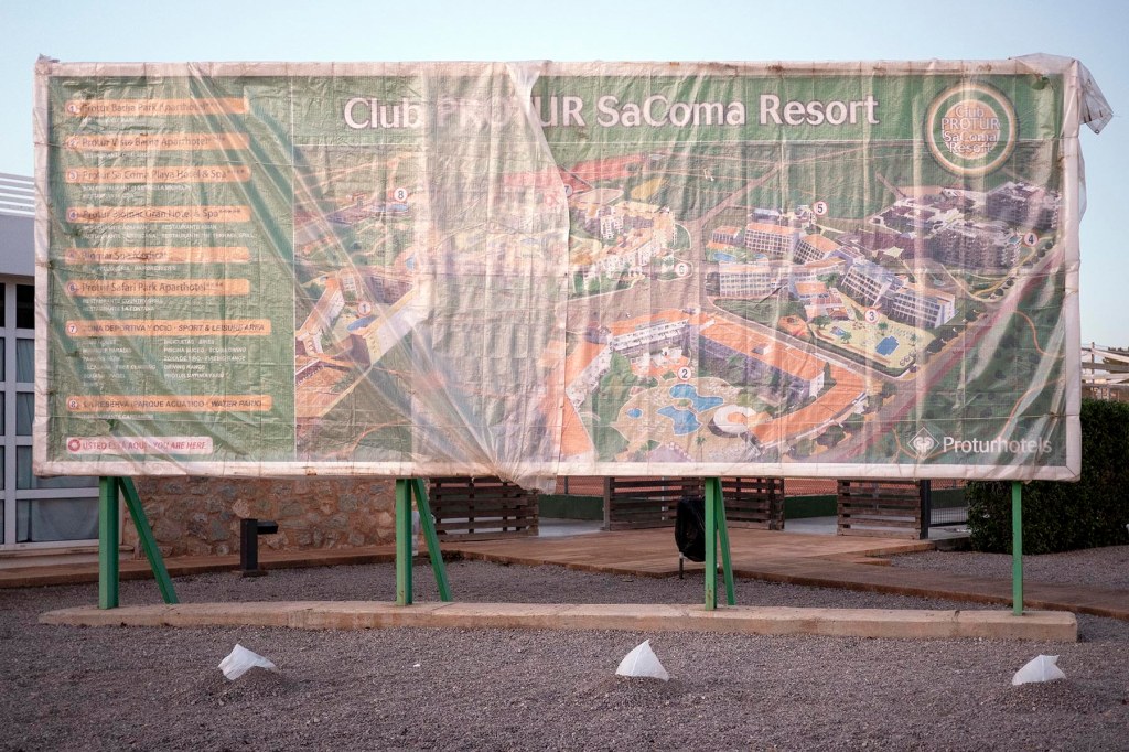 A un racó de l’est de l’illa de Mallorca, s’espera en silenci l’arribada dels mesos de l’excés. Al desembre, un complex hoteler com el de les fotografies és un lloc sense gent ni renou. Falten rajoles a les piscines, que s’afegiran durant les setmanes prèvies a la nova temporada turística. Senyals de tràfic jeuen tombats. Hi ha llums embolcallats amb lones i rètols tapats amb plàstics. Tot és nou i vell, al mateix temps. A l’entrada de les instal·lacions, un gran plafó, recobert amb una funda, amaga les explicacions gràfiques de la ubicació. Al plànol gegant hi ha un minigolf, piscines, hotels de quatre i cinc estrelles, un espai de piscines de bombolles, un club amb 18 pistes de tenis i mil coses més. Un discret esbart d’estornells s’ho mira a vista d’ocell. Vull creure que és el mateix que fa unes setmanes vaig veure pels afores de Luxemburg, i que viatja cap al sud, durant els mesos d’hivern. M’agrada pensar que ja ha arribat a Mallorca, després de recórrer 1.200 quilòmetres i aviat travessarà la Mar (sí, la Mar, perquè aquí només n’hi ha una de mar, que és el Mediterrani) i gaudirà del clima suau d’Algèria o el Marroc.